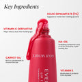 Hydrogenated Polyisobutene, Caprylic/ Capric Triglyceride, Microcrystalline Wax, Dipentaerythrityl Hexahydroxystearate/Hexastearate/Hexarosinate, Dextrin Palmitate/Ethylhexanoate, Kojic Acid Dipalmitate, Polyglyceryl-2 Irisostearate, Cl 15850, Tocopheryl Acetate, Cl 45380, Iriethoxycapryly|silane, Polyhydroxystearic Acid, Aminopropyl Triethoxysilane, Ascorbyl Tetraisopalmitate, Butyrospermum Parkii Butter, Canola Oil, Ricinus Communis Seed Oil, Sorbitan Olivate, Daucus Carota Sativa Seed Oil, Sodium Hyaluronate, Beta-Carotene, Daucus Carota Sativa Root Extract, Helianthus Annuus Seed Oil, Caproic Acid